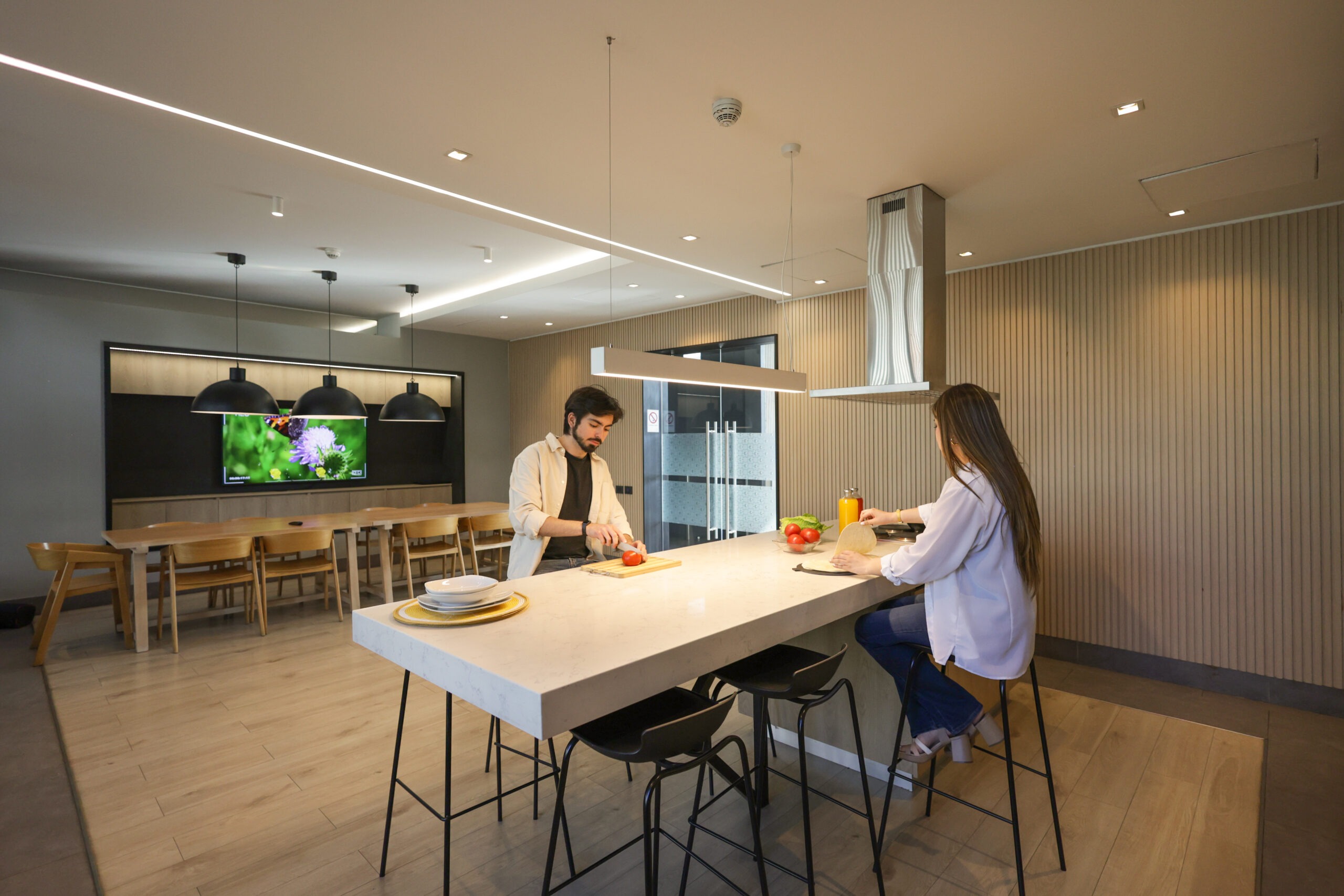 Espacios comunes para tu día a día: cowork, salón gourmet, lavandería y recepción de deliveries.